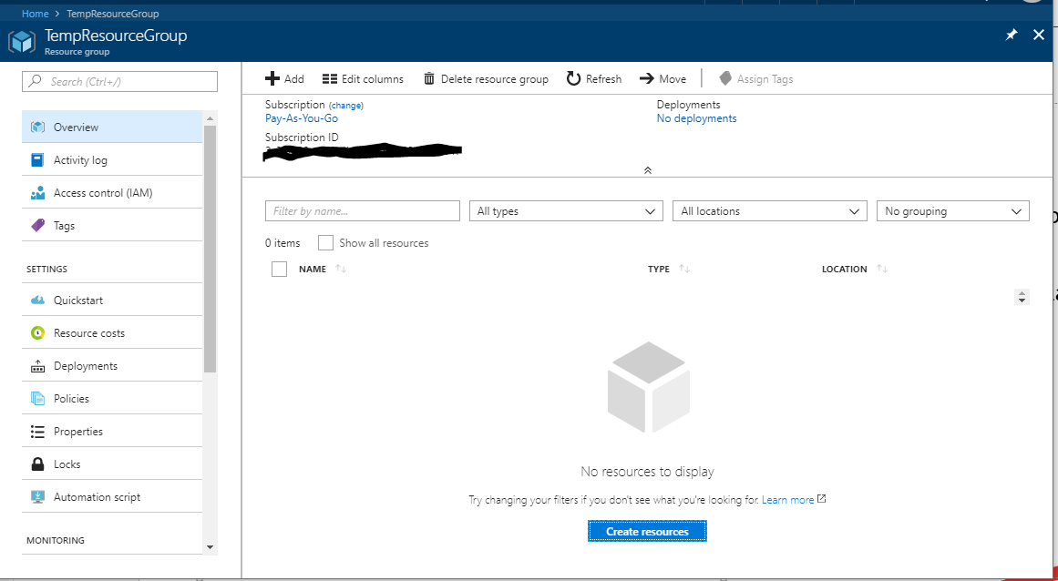 Name the resource group, choose a Resource group location as close to your location as possible and click the Create button.
