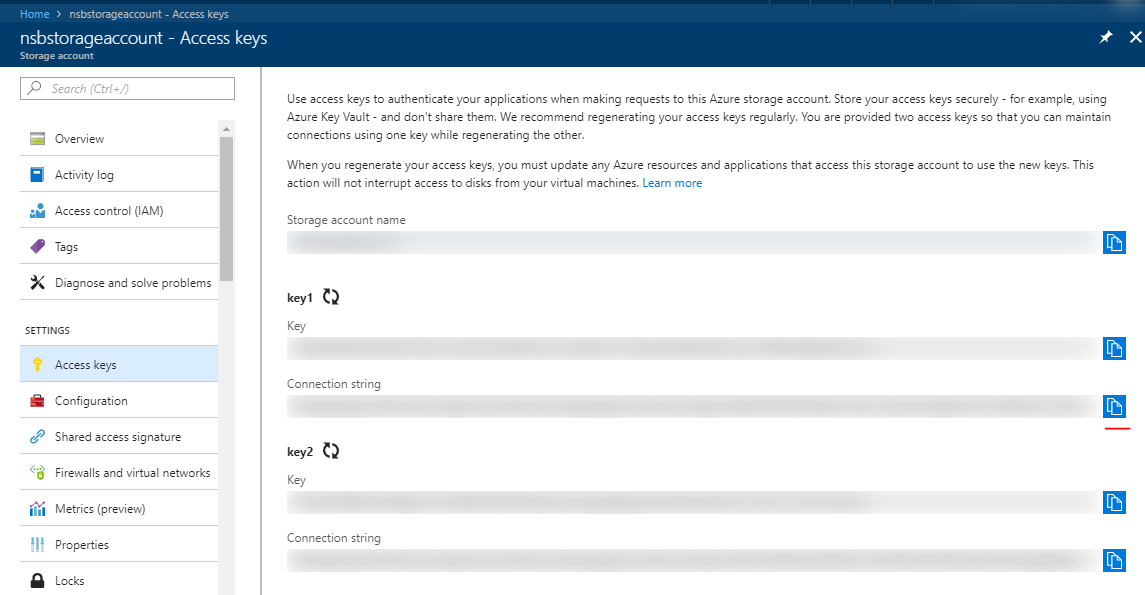 Now that your storage account has been created, you're going to need a connection string to drop into the solution file. Find your newly created storage account and click on it. You'll be brought to your storage account page: