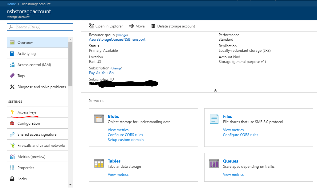 Log into your Azure account, find your subscription, and navigate to the storage account you created.