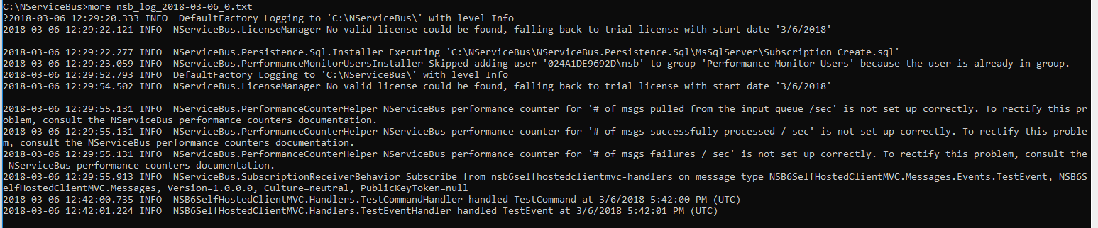 The bottom two lines show that TestCommand was handled as well as TestEvent.