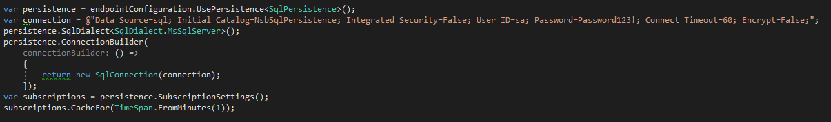 Now that we have Sql Persistence set up, we need to find a way to containerize a Sql Server instance and have that instance available to NServiceBus to use for its persistence needs.
